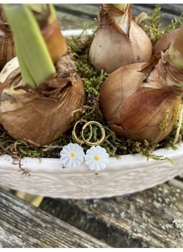 19,00 €Boucles d'oreilles en acier inoxydable doré avec fleur marguerite en nacre.