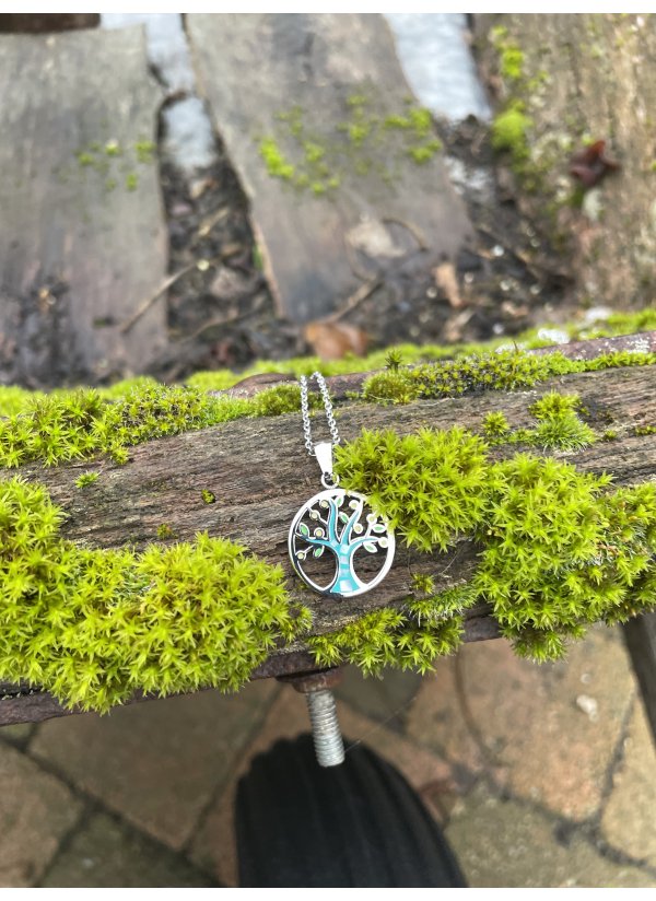 Collier en acier inoxydable argenté, avec pendentif arbre de vie.